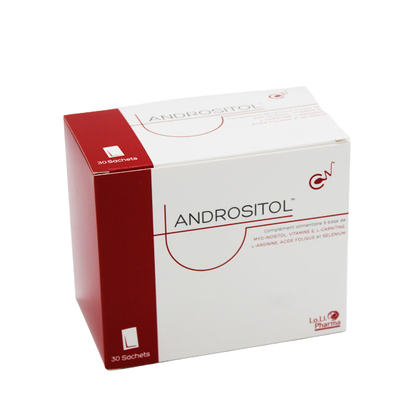 Andrositol est un complément alimentaire à base de Myo-INOSITOL, de VITAMINE E, de L-CARNITINE, de L-ARGININE, d'acide folique et de SELENIUM. Il contribue à la spermatogenèse normale, en cas de réduction de la capacité reproductrice masculine, augmentant la qualité et la quantité de spermatozoïdes. 30 sachets de 3. 5 g.
