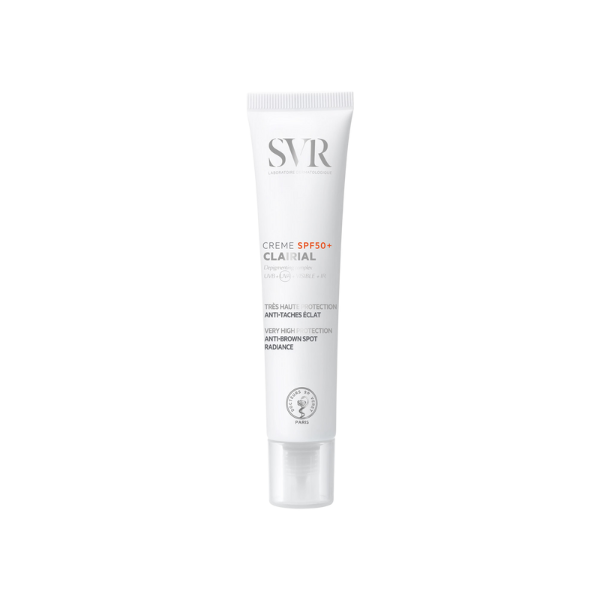 CLAIRIAL SPF50+ 40ml | Soin dermatologique 2-en-1 conçu pour corriger et prévenir l’apparition des hyperpigmentations. Réduit la taille des taches et améliore l’homogénéité du teint dès 28 jours. Protection cutanée avancée à large spectre (UVB, UVA, lumière visible, infrarouges) grâce à la technologie brevetée de défense solaire SVR.