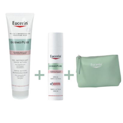 EUCERIN DERMOPURE GEL NETTOYANT TRIPLE ACTON 150ML+SERUM TRIPLE ACTION+TROUSSE