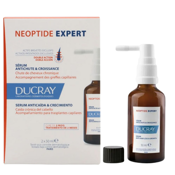 Le Sérum NEOPTIDE EXPERT agit sur la chute chronique¹ de l’homme et de la femme, grâce à ses actifs brevetés exclusifs. Double action : antichute et croissance. Il densifie la chevelure², augmente le volume² et renforce la fibre capillaire². Mécanismes d’action inédits : augmentation de l’ancrage des cheveux et régulation du cycle pilaire Dans sa formule: de l’ANCHORANE pour l’ancrage, du LESPEDEZA pour la régulation du cycle pilaire, de la MANGALIDONE pour la microcirculation et des agents hydratants pour le confort d’utilisation. Son efficacité antichute est prouvée cliniquement dès 2 mois¹. Il peut être employé seul, en complément de traitements médicamenteux de référence, ou en accompagnement des greffes capillaires. Il s’applique 1 fois par jour en 8 pulvérisations sur le cuir chevelu sec ou humide et s’accompagne d’un léger massage. Il contribue à une amélioration significative de la qualité de vie des personnes souffrant de chute de cheveux¹. Testé sous contrôle dermatologique.
